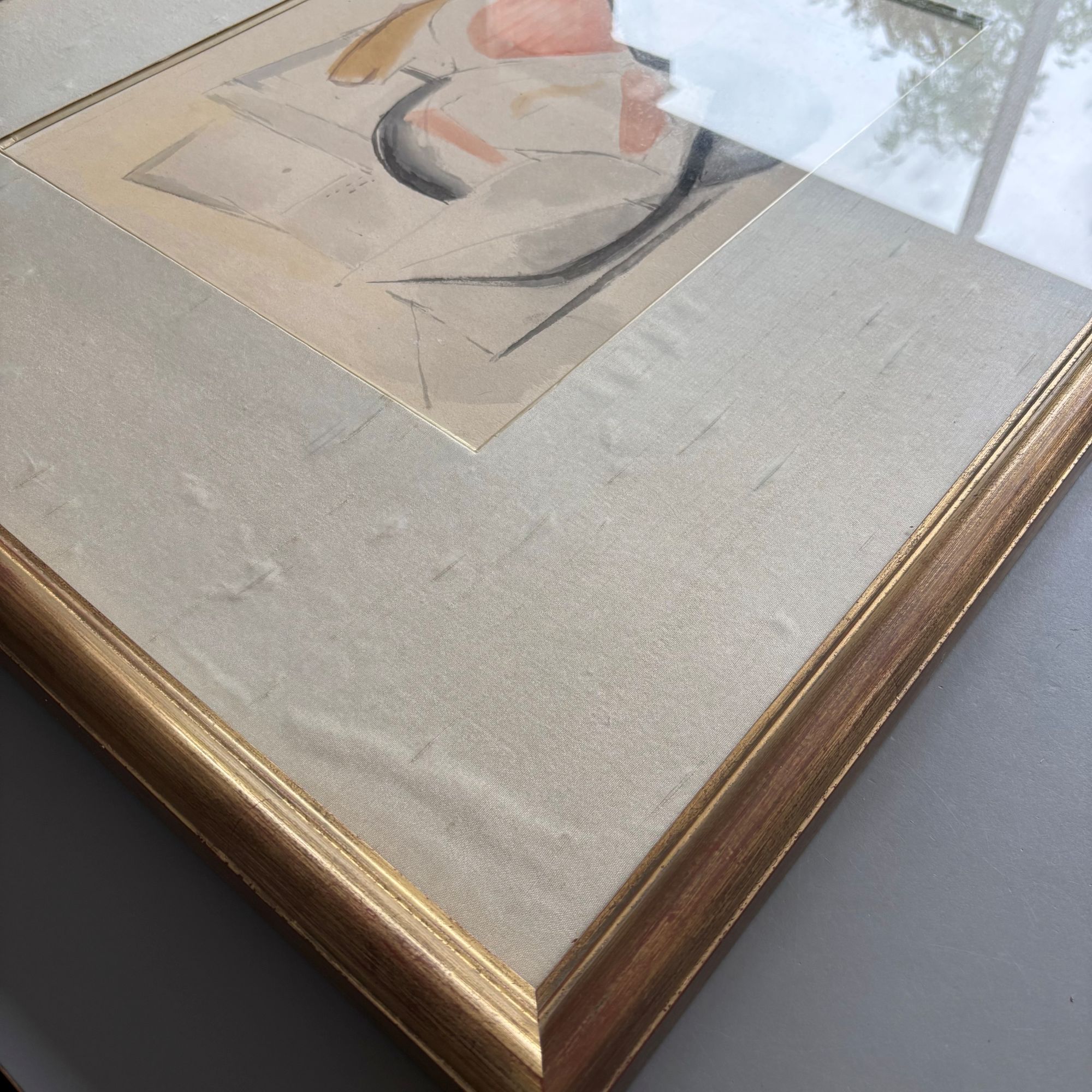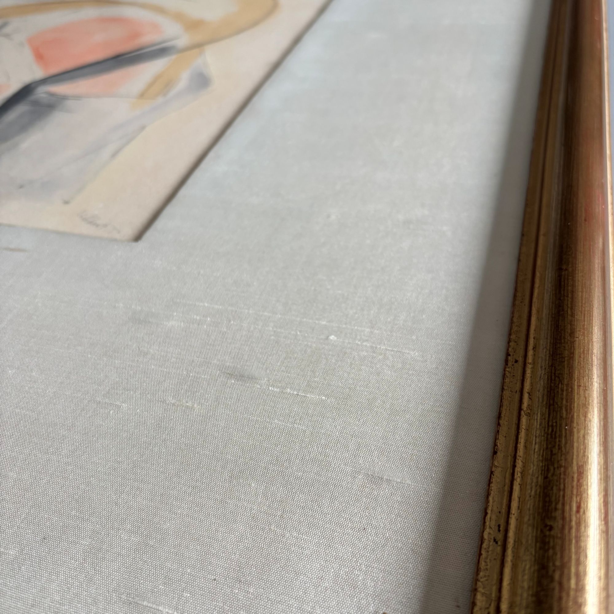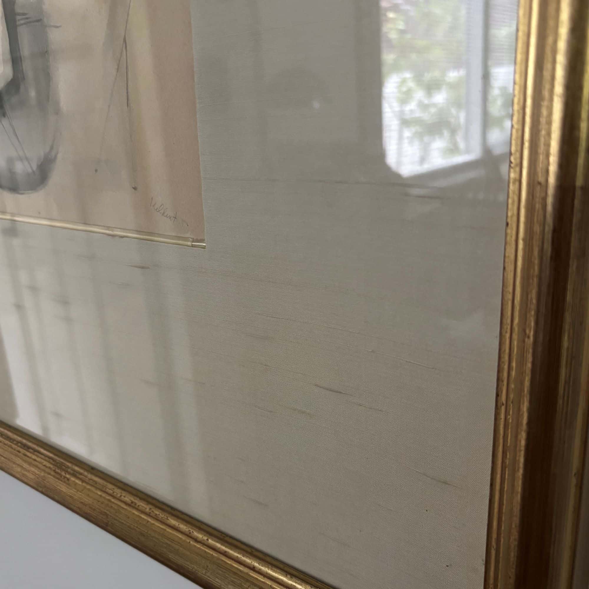 Nicely framed with a passe-partout made of a very light blue silk fabric.
