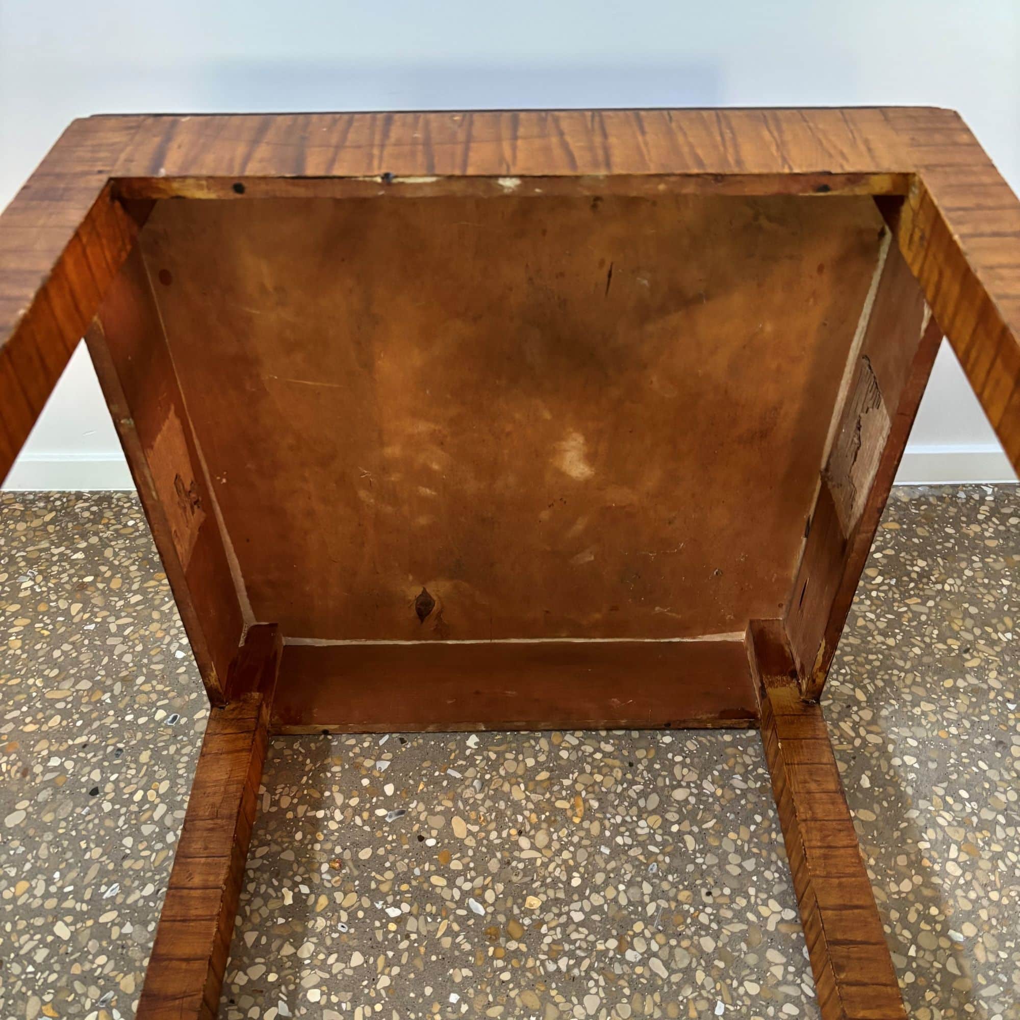Underneath the table there is an old paper label from the Dutch railway company in a writing that dates the set to be from the 1st half 20th century (Nederlandsche Spoorwegen) and indicated this set has been transported in that period of time.