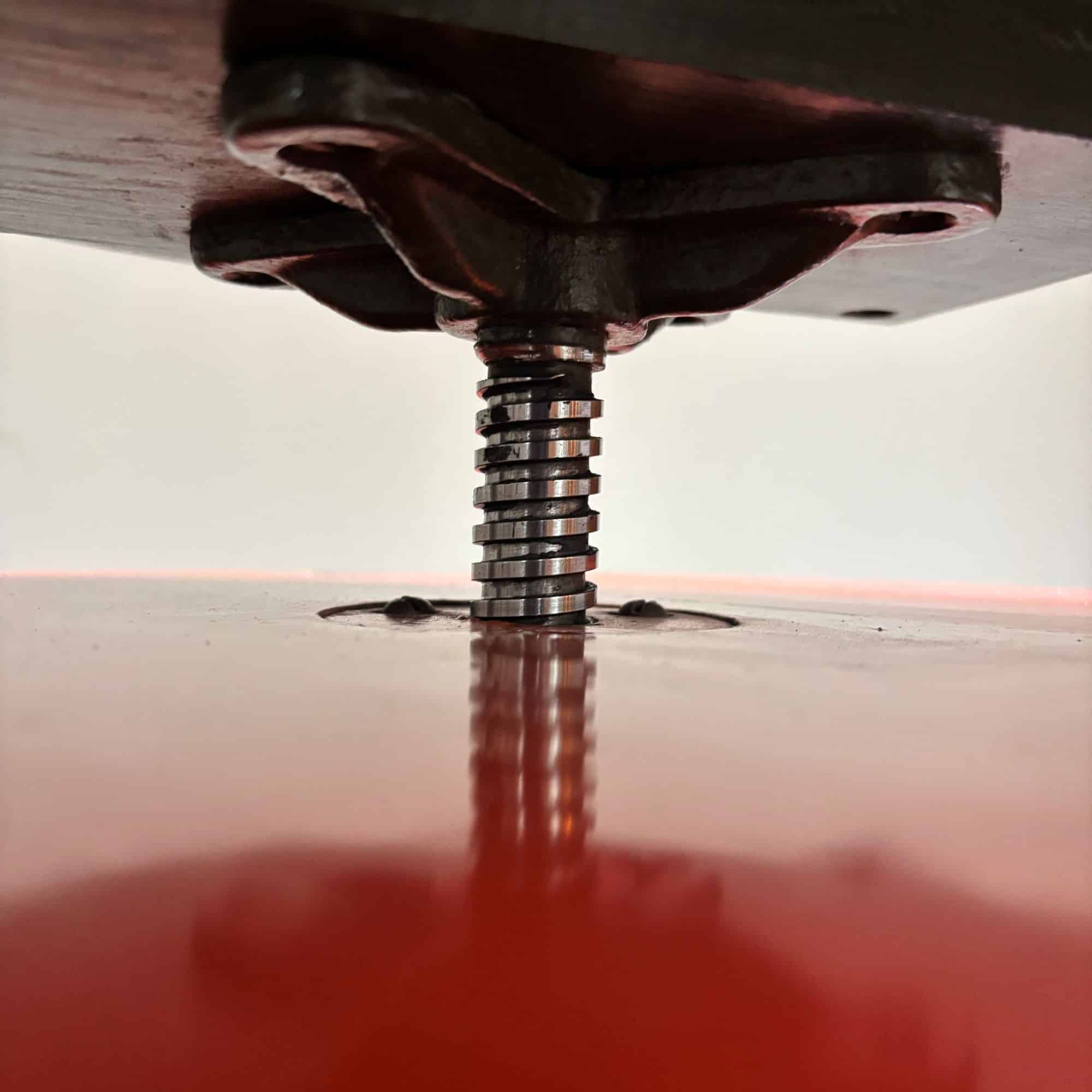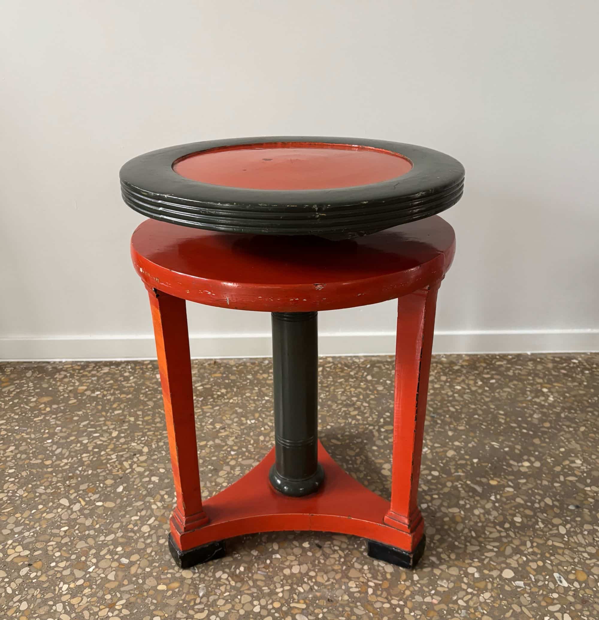 Art Deco style (piano) stool, adjustable, green and orange paint, 1920/30s