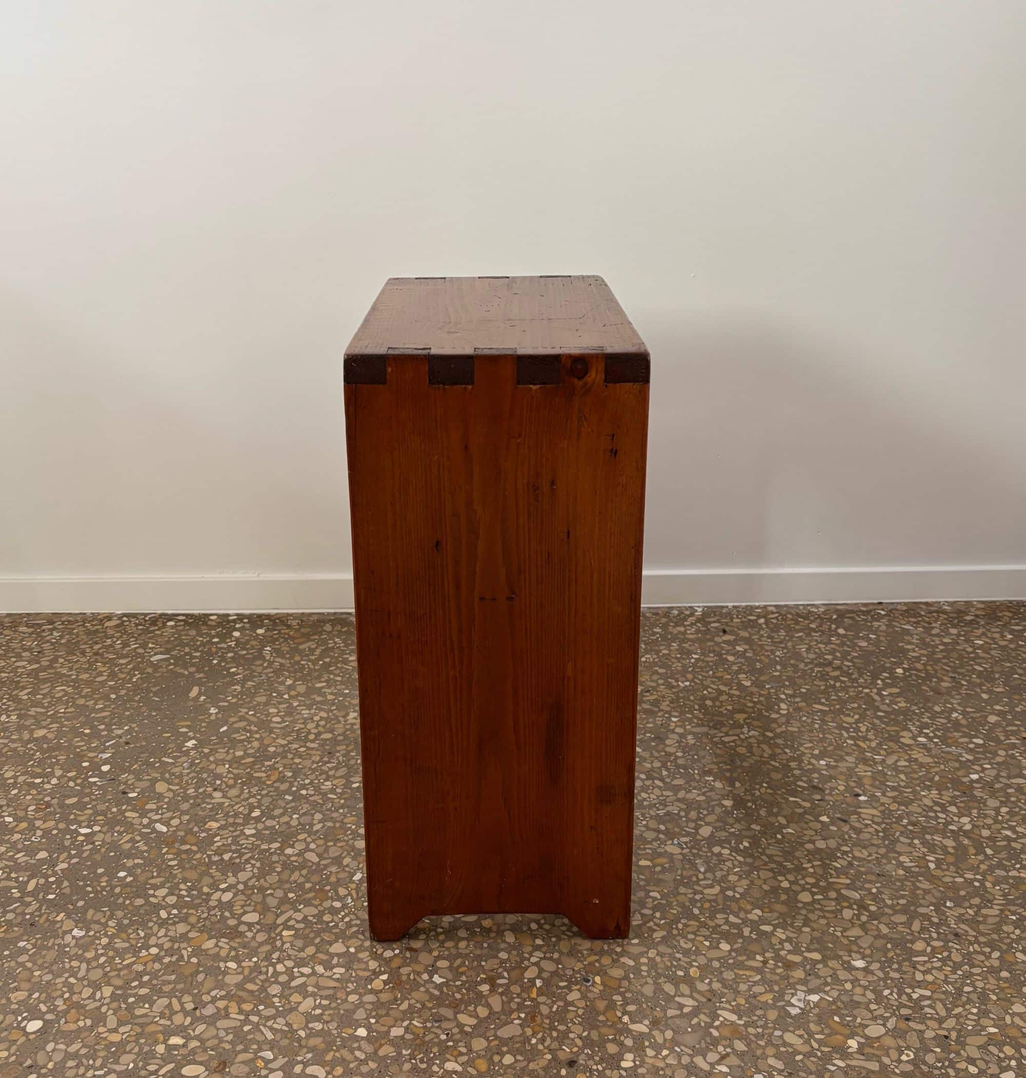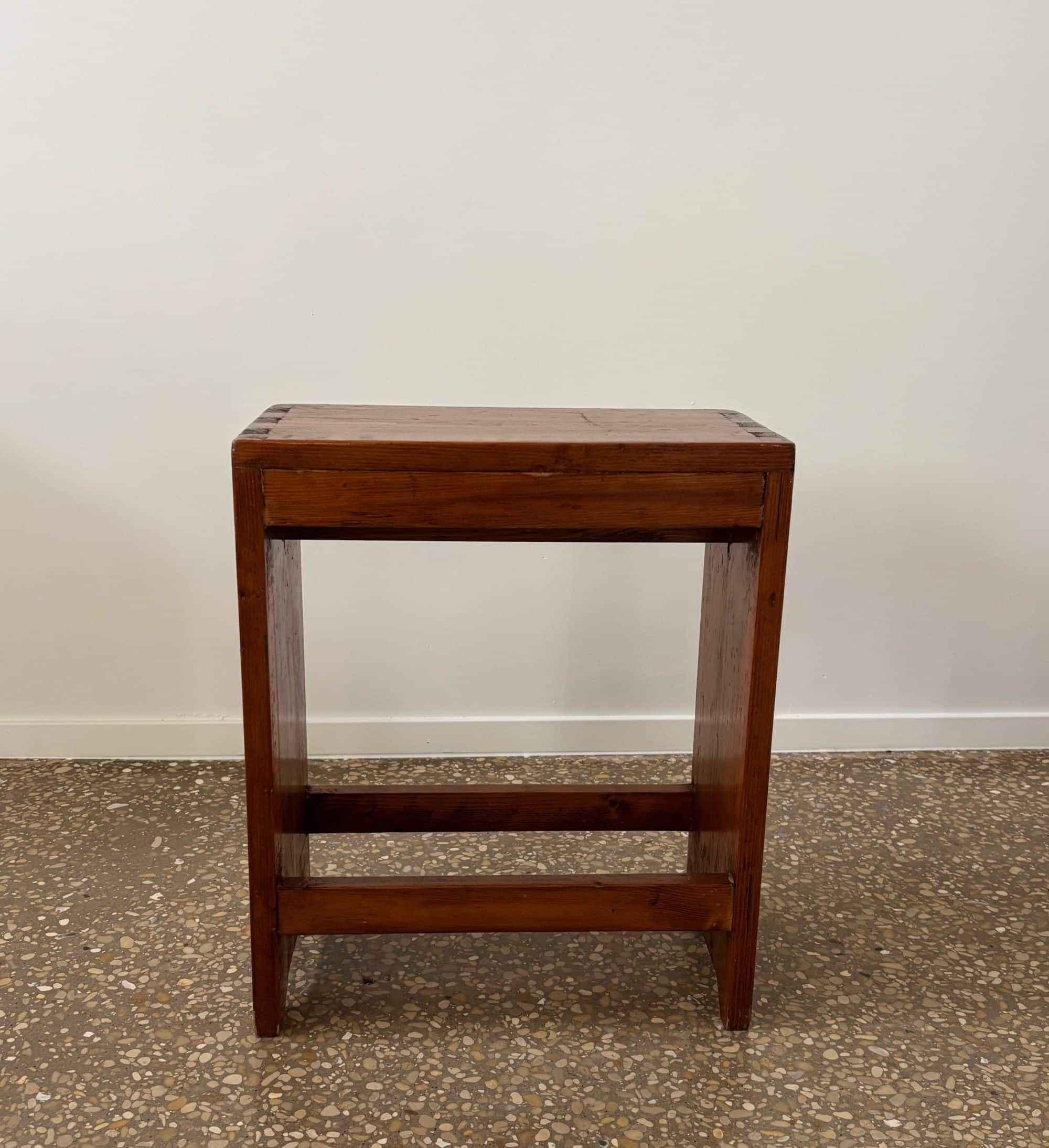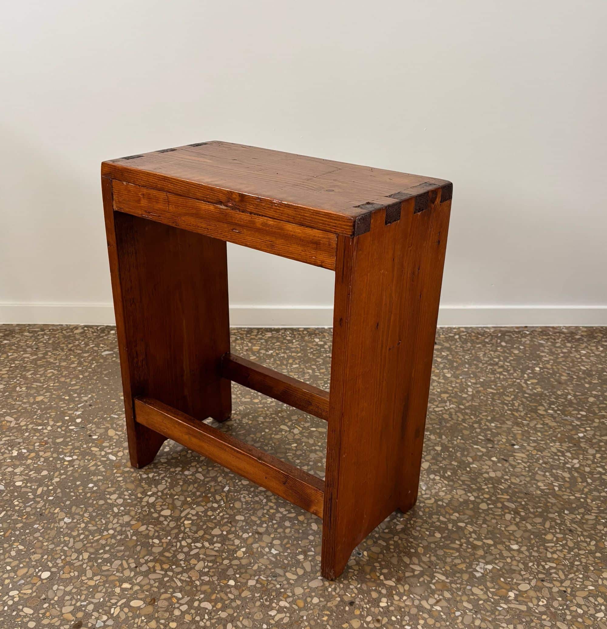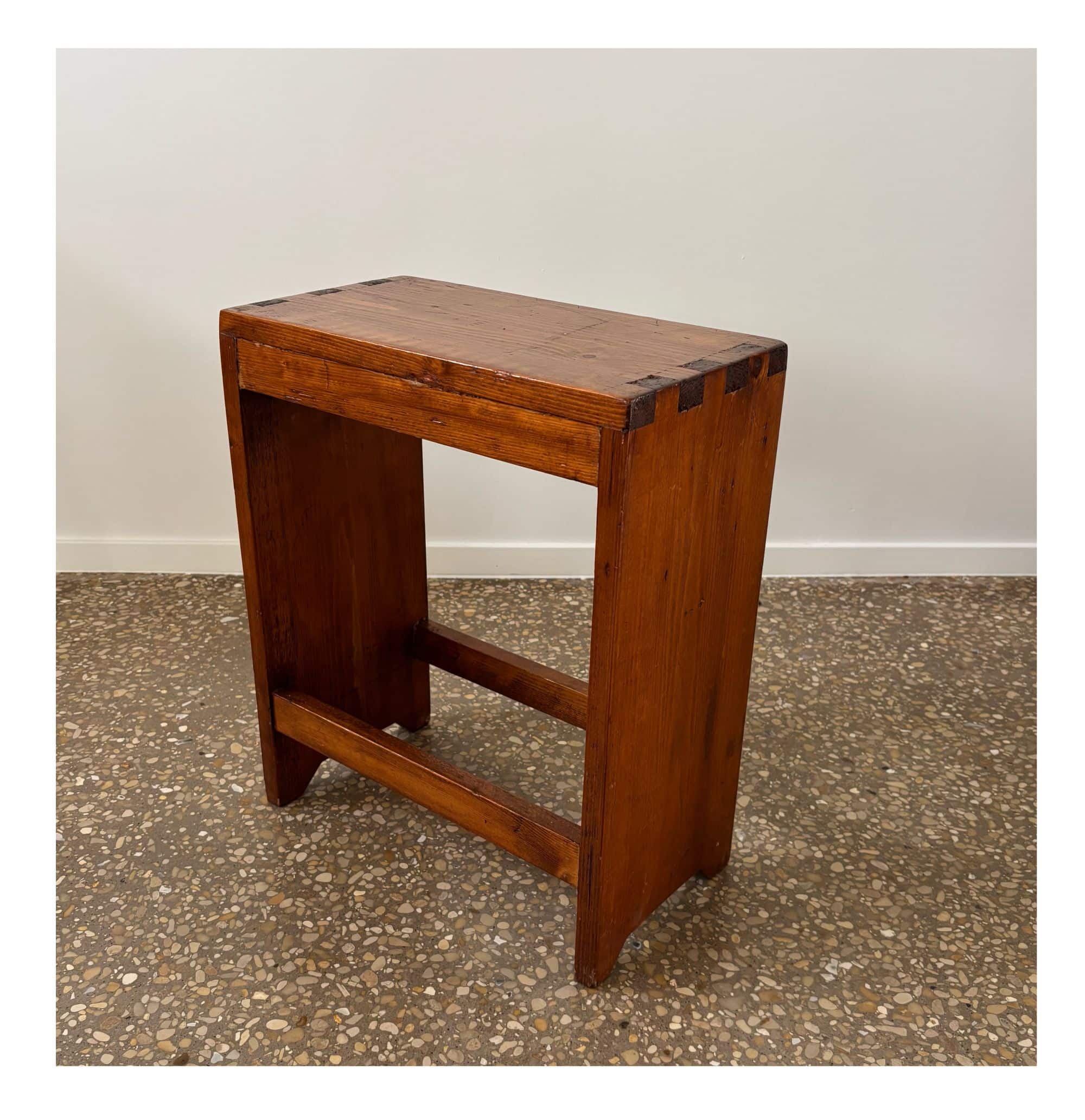 Brutalist chalet bench or factory stool, solid pine, France, 1950s