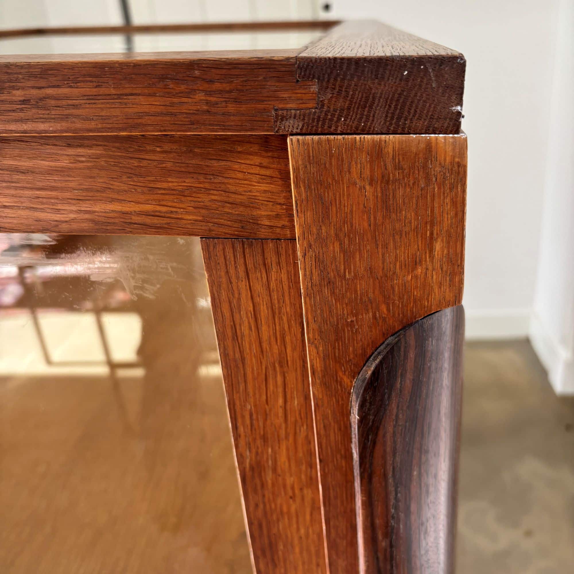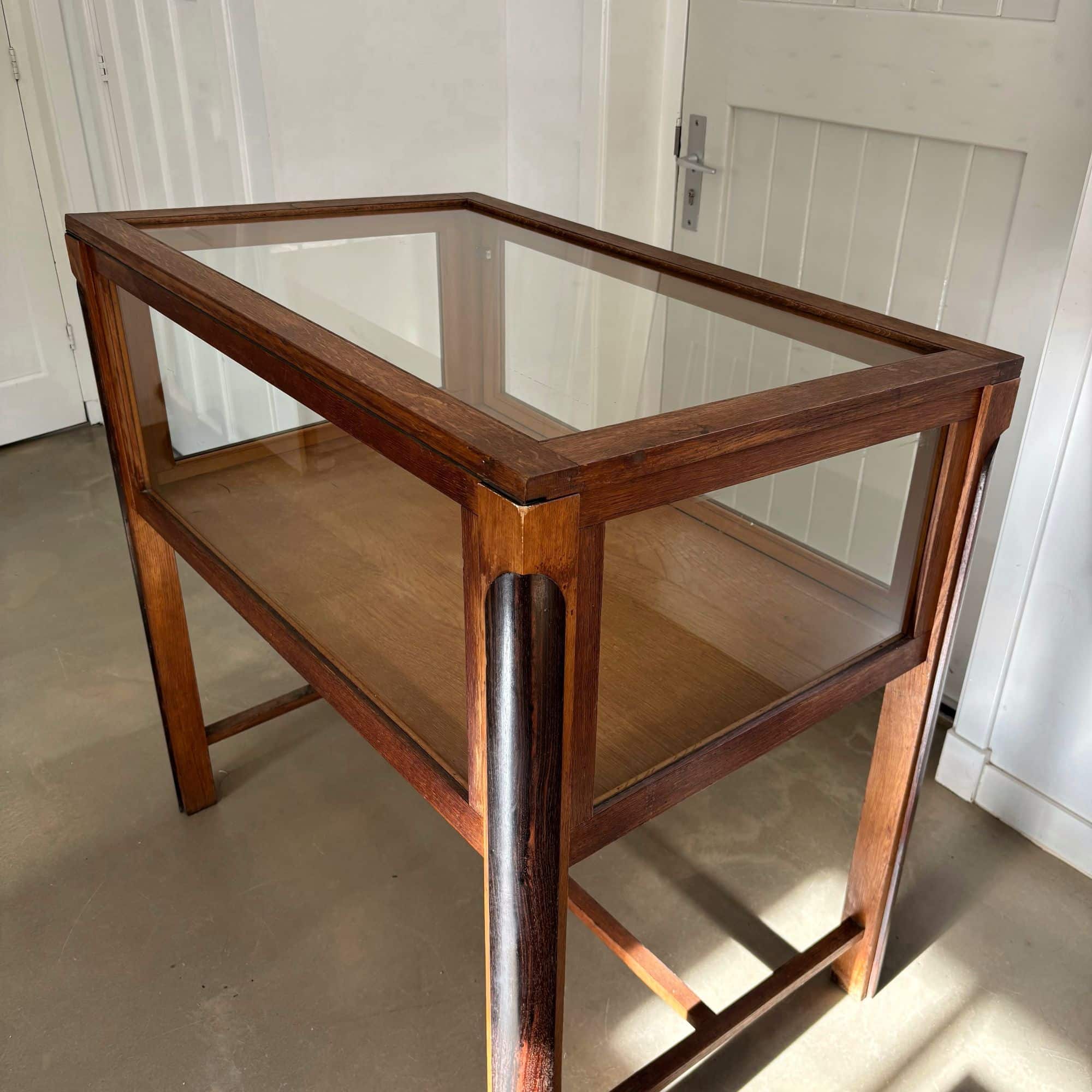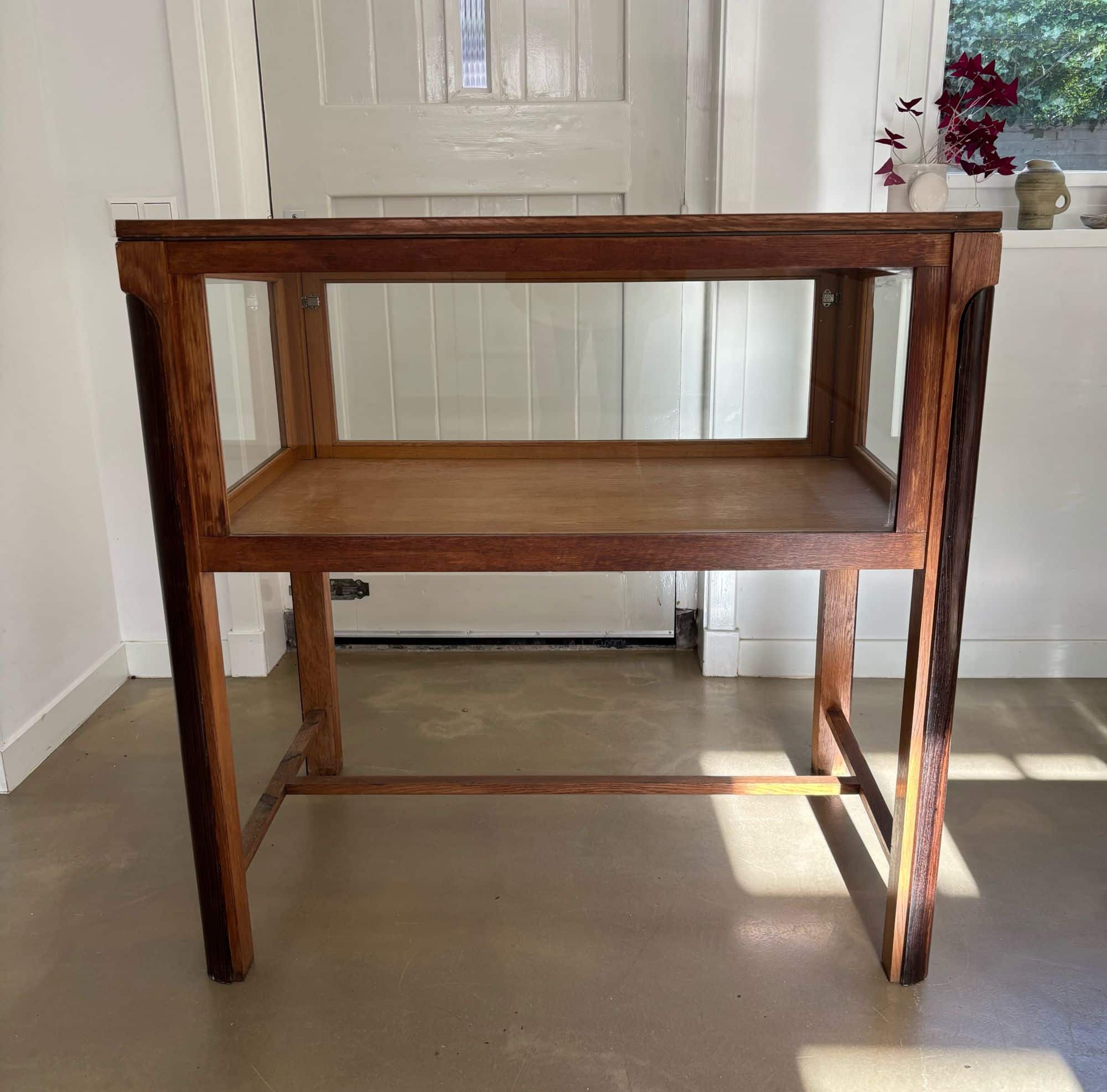 Impressive show cabinet made of two wood types and glass, originating from an Dutch museum.
