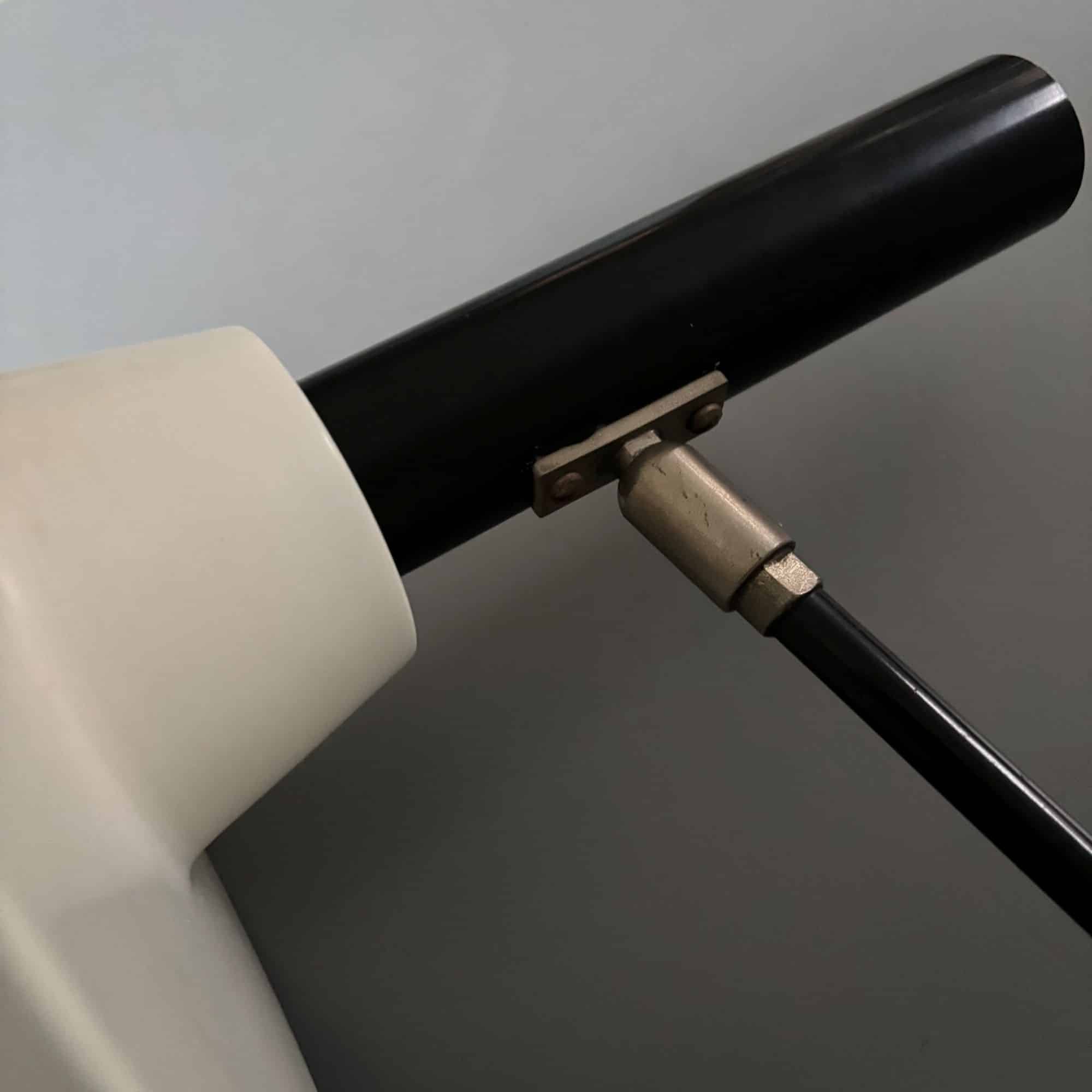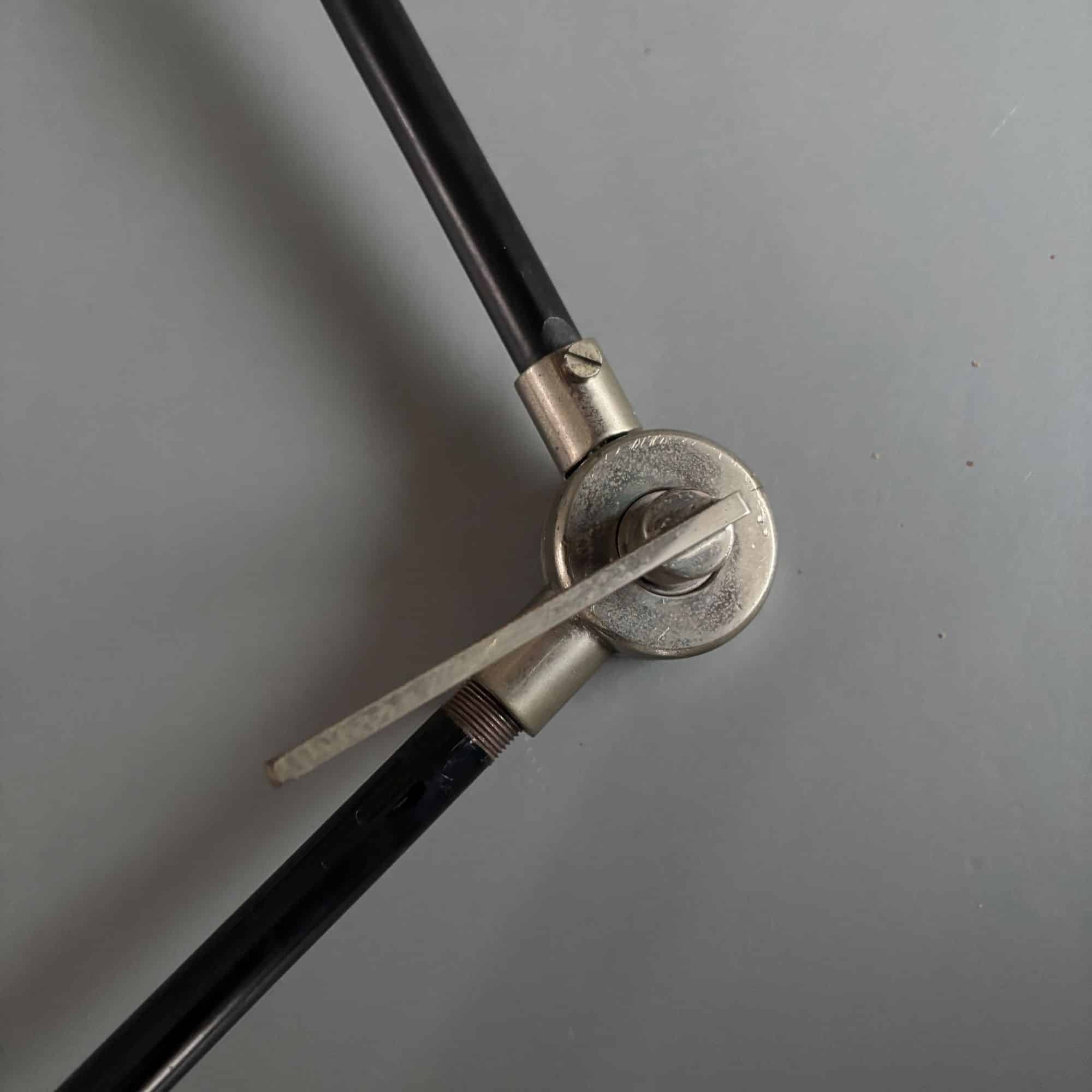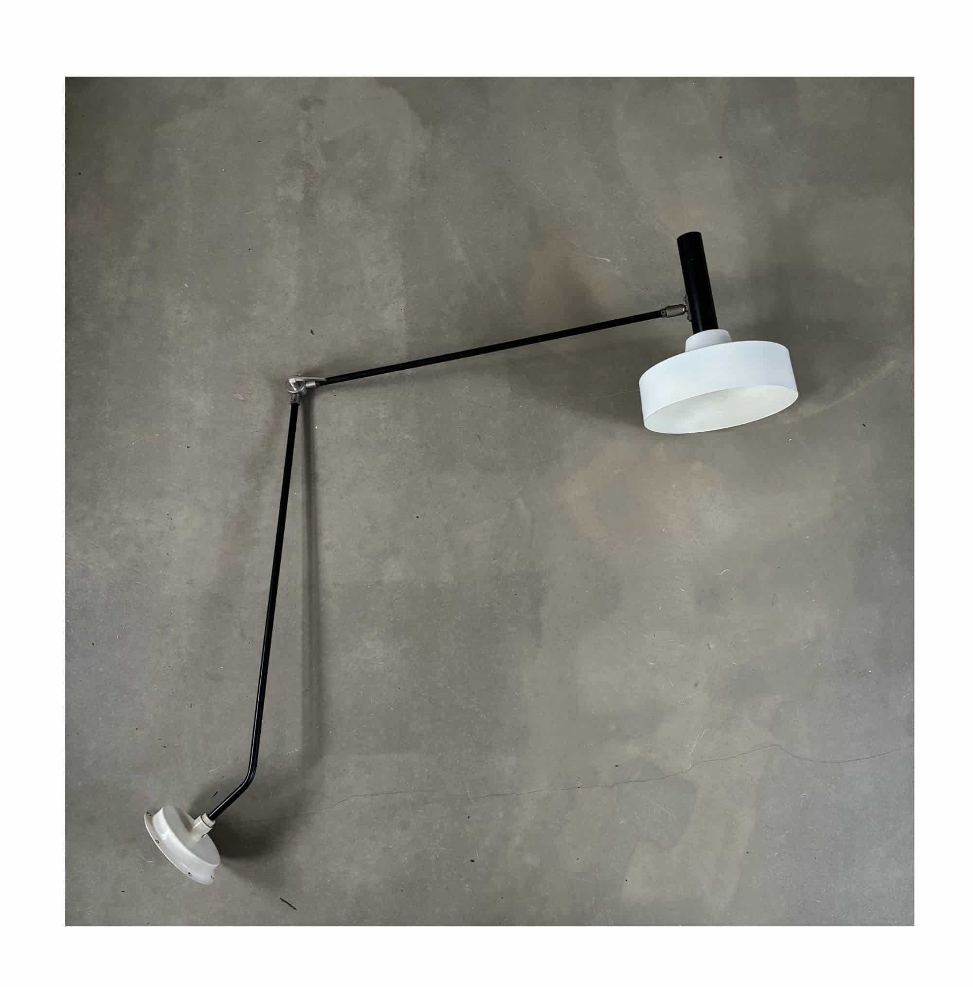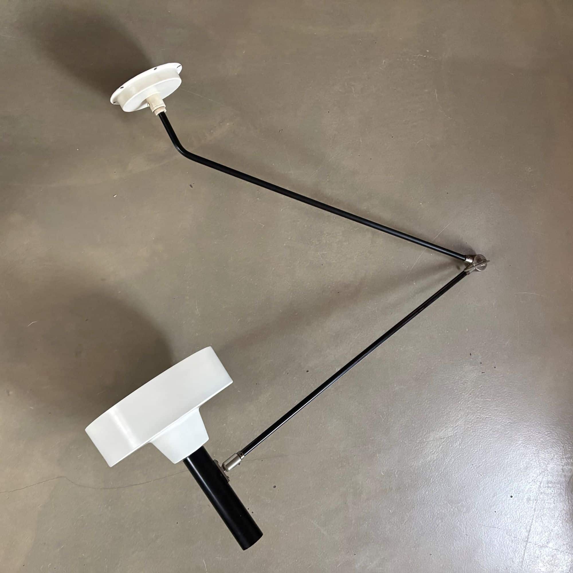 The lamp is large of size and adjustable with its adjusting mechanism in the middle so it can be used in several positions as well as wall lamp as ceiling lamp in many different positions. The lamp can be fixed to a wall or from the ceiling.