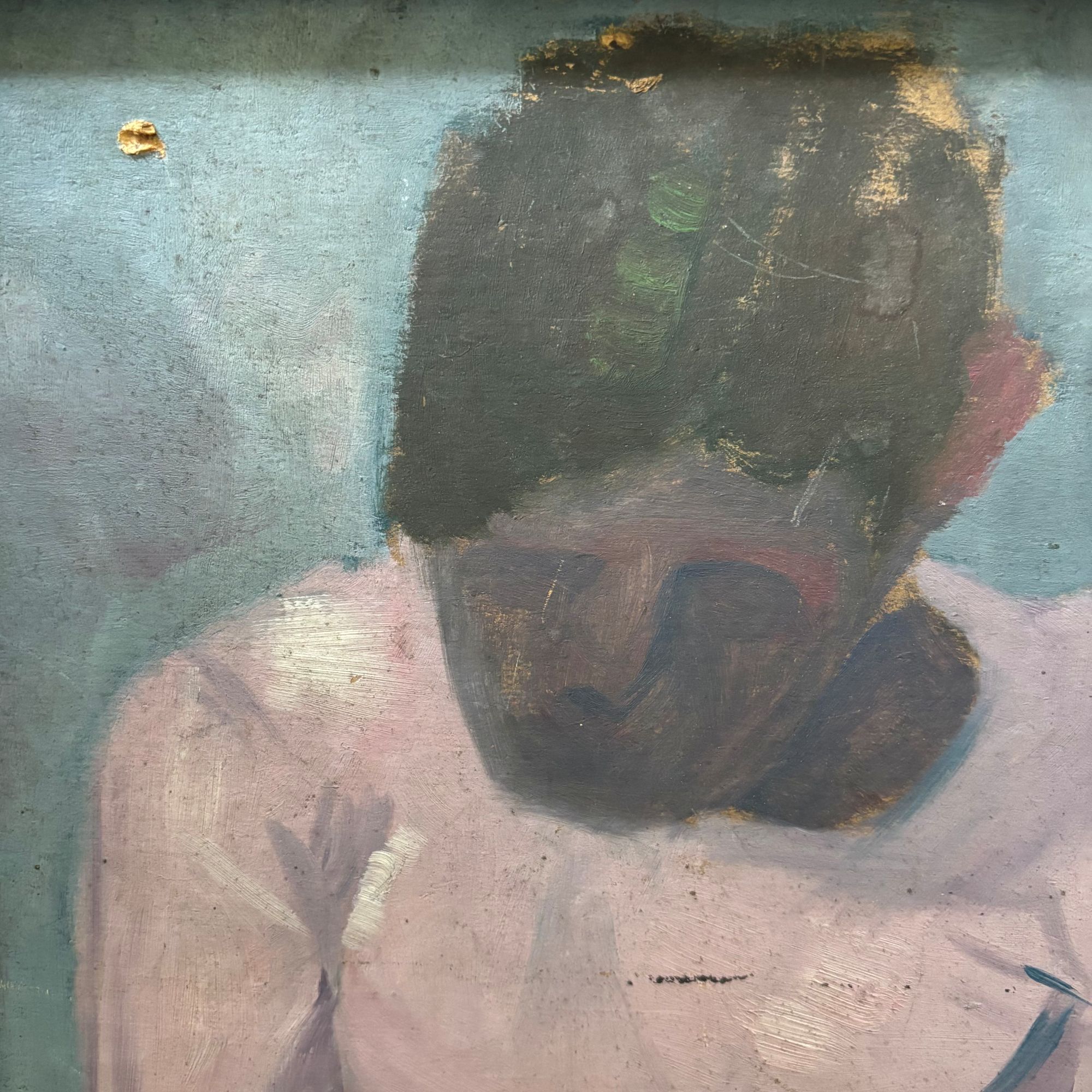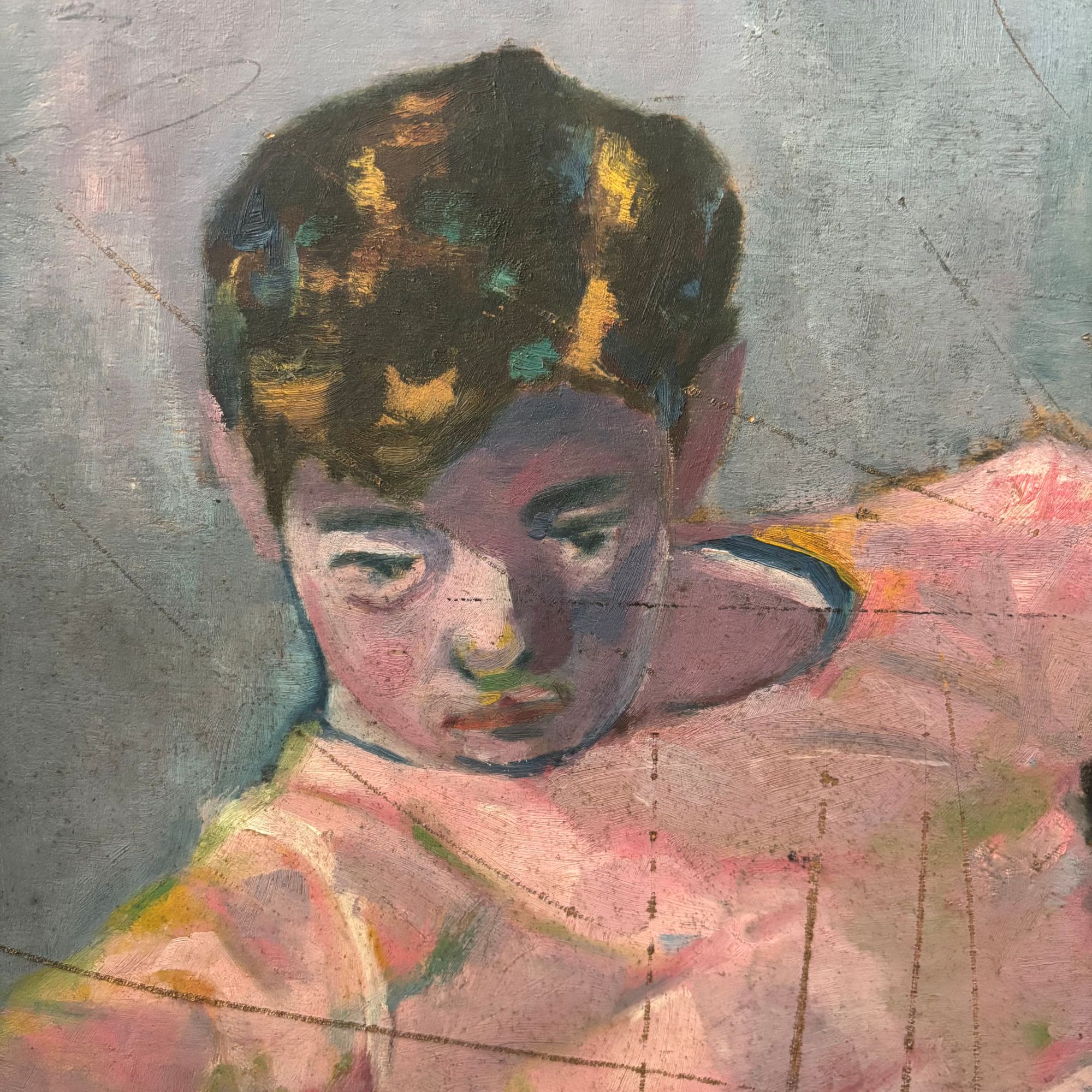 Portrait of a woman, verso: resting boys , oil on board, signed Arnout Colnot