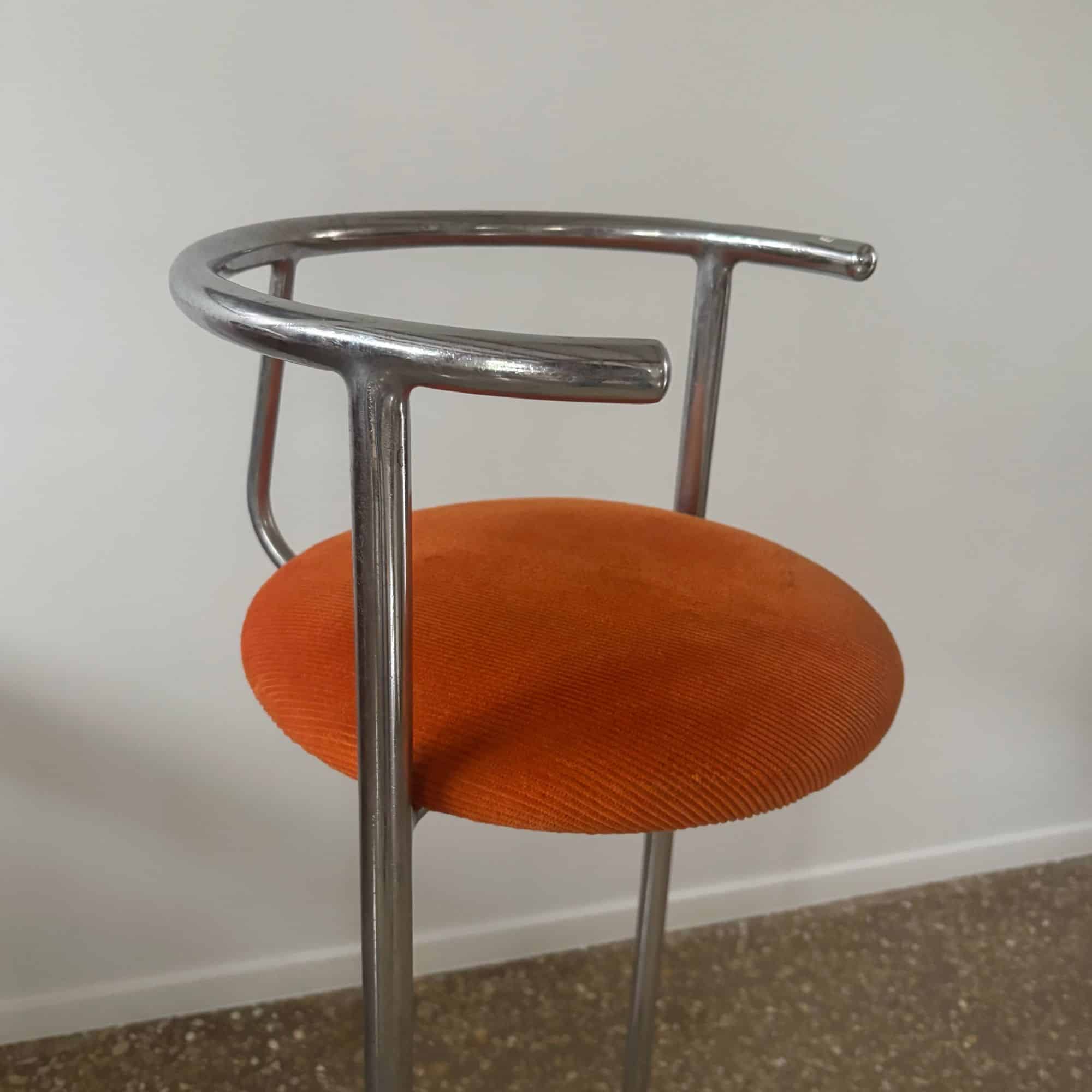 The high chair was designed in 1936 for the Utrecht lock factory Hopmi. Three years earlier, Grimmon had collaborated with Herman Mertens to design a range of furniture for UMS (later Pastoe), which was also produced with Hopmi.